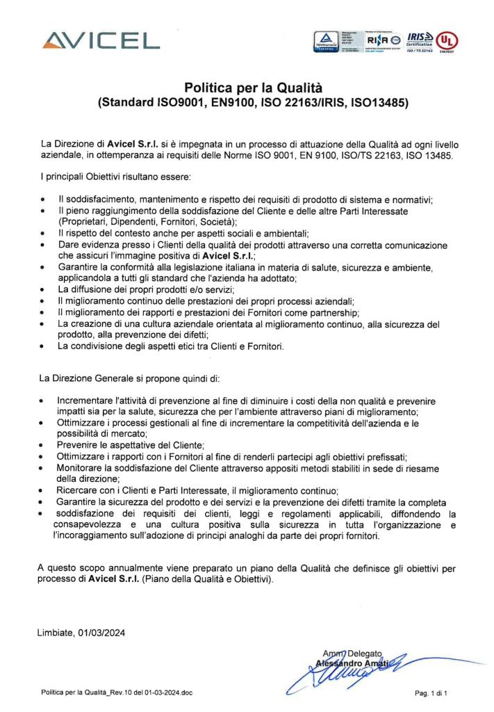 Environmental policies and of quality